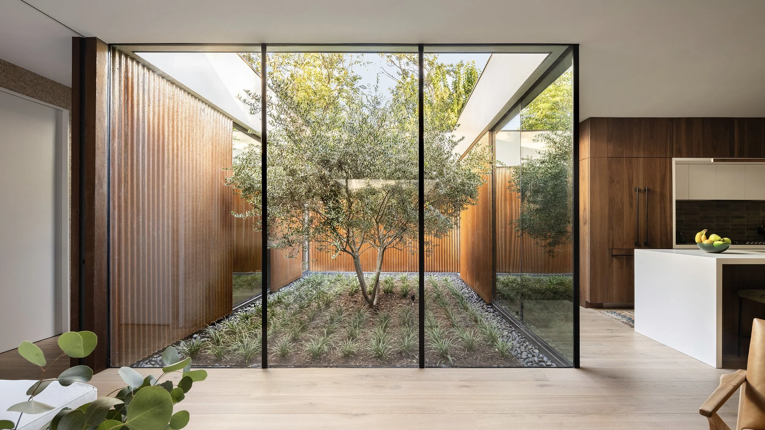 Stealth House is an 1,100sf single story residence constructed by Smock Studio in 2024. The house is a small experimental project designed by Scott Specht to be his personal residence. The building occupies the back half of a standard Austin lot, oriented toward a gravel alley—a property type common in the area.A striking feature of the design is the absence of windows on all four exterior-facing walls. Instead, the plan is organized around two large interior courtyards framed with full-height glass, bringing light and views inward while maintaining complete privacy. To keep costs manageable, the building was constructed using straightforward methods and simple materials. Through close collaboration between Specht Novak and Smock Studio, these ordinary materials were elevated through thoughtful detailing and careful craftsmanship.